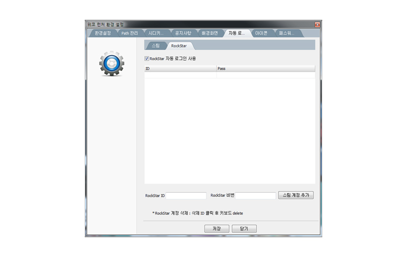 ȯ°æ¼³Á¤ > ÀÚµ¿ ·Î±×ÀÎ > Rockstar ¼±ÅÃ